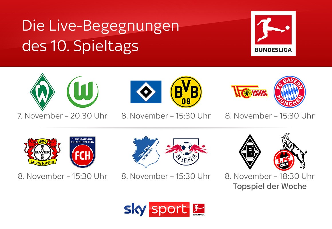 Die Sonntagsspiele der 1. Fußball Bundesliga der 9. Spieltag live am 02. November 2025