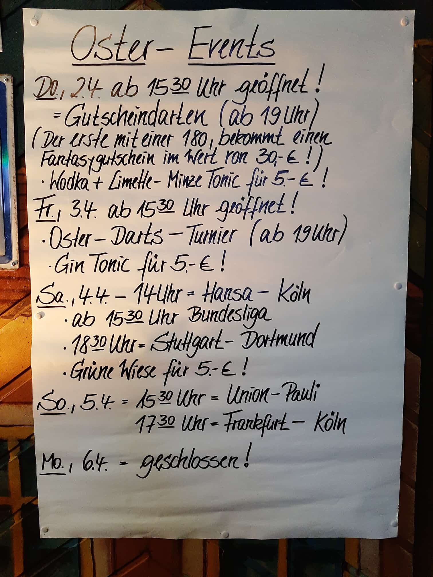 Euer Osterwochenende im Fantasy Güstrows Sportsbar Nr.1